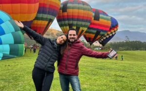 O casal ficou hospedado cinco dias na cidade e fez um voo de balão. O passeio foi uma surpresa de Flávia como presente para celebrar a data. “Foram dias abençoados ao seu lado. Eu que sempre fui acostumado a fazer surpresas, fui o surpreendido, né? Amei tudo!”, disse o cantor em suas redes sociais.