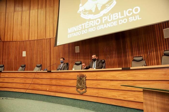 Nesta terça-feira, 17 de agosto, o subprocurador-geral de Justiça para Assuntos Institucionais do MPRS, Júlio César de Melo, e o promotor de Justiça que atua no caso, André Tarouco, concederam entrevista coletiva. Ao abrir o evento, Melo elogiou o trabalho realizado pelo colega e saudou o coordenador do Centro de Apoio Operacional Criminal e de Segurança Pública (Caocrim), Rodrigo da Silva Brandalise, o coordenador do Núcleo de Inteligência do MPRS (Nimp), Reginaldo Freitas da Silva, e o promotor-assessor Fernando Cesar Sgarbossa, que prestigiaram o evento.