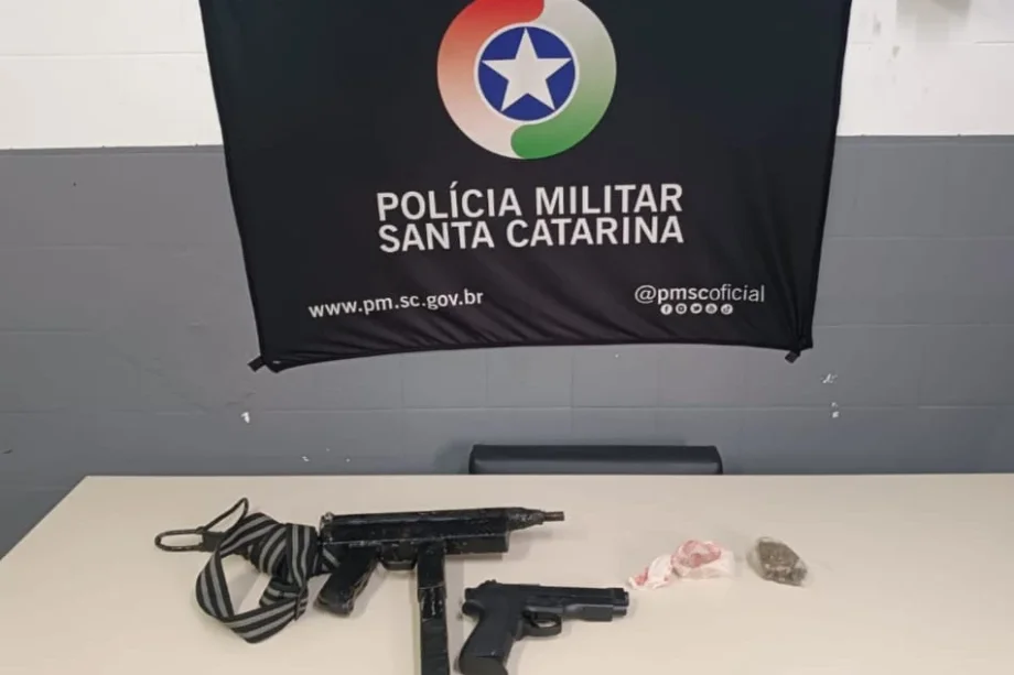 Com a autorização da responsável legal, os policiais realizaram buscas na casa onde o adolescente residia e localizaram uma arma de fogo artesanal e uma réplica de pistola.