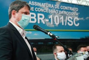O trecho da BR-101 que corta o Sul de Santa Catarina já está sob responsabilidade da concessionária CCR. Foi assinado na manhã de ontem, segunda-feira, 06, no aeroporto de Jaguaruna, o contrato de concessão da rodovia. O ato contou com a presença do ministro da Infraestrutura, Tarcísio de Freitas. O governador Carlos Moisés, em quarentena por conta da Covid-19, foi representado pelo secretário de Estado da Infraestrutura e Mobilidade, Thiago Vieira.