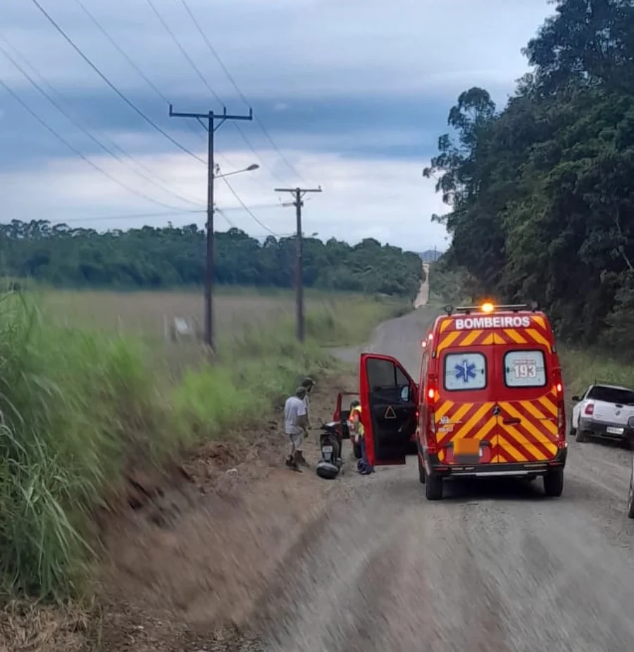 A equipe do ASU-557, do Corpo de Bombeiros de Morro da Fumaça, atendeu a ocorrência por volta das 17h24. No local, os socorristas encontraram a vítima consciente, porém confusa, caída na via e já sem o capacete. Ele apresentava contusões e escoriações no ombro, braço e antebraço direitos, além de ferimentos no quadril e lábio superior.