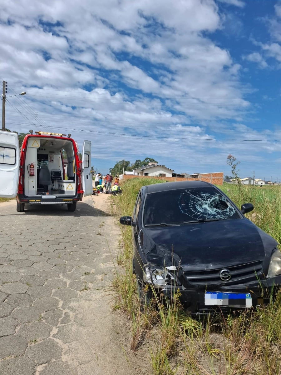 Na noite desta sexta-feira (28), um motociclista de 34 anos ficou ferido após um acidente de trânsito envolvendo um carro e uma moto na Avenida Tranquilo Pellegrin, no bairro Palladini, em Morro da Fumaça.