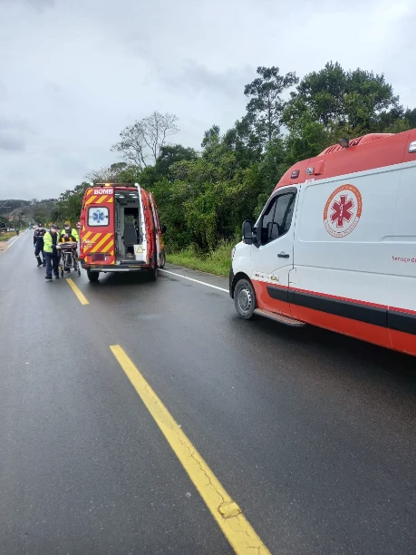 BombeirosMulher fica ferida após queda de moto na SC-443, em Sangão
