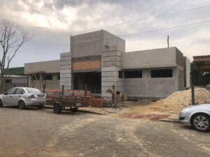 Como pode ser observado no local, o novo posto está com toda a parte da estrutura e paredes concluídas. “Estamos hoje na fase de execução dos revestimentos internos, externos e cobertura, sendo que depois disso a obra se encaminha para sua fase final, que seria a colocação das esquadrias, instalações hidrossanitárias e elétricas, pintura e ajardinamento”, explica o engenheiro Bruno Nagel, que acompanha o andamento dos trabalhos.