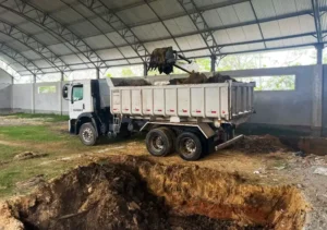 Mesmo com a chuva persistente, o trabalho se manteve como programado, graças à cobertura do futuro Complexo de Aquático que já está pronta.