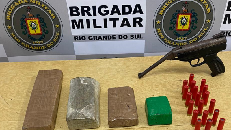 Policiais militares do 4° Batalhão de Polícia de Choque (4° BPChq) prenderam dois indivíduos da mesma família por porte ilegal de arma e tráfico de drogas na Estrada das Macieira, na localidade de Poço Redondo, em Jaquirana.