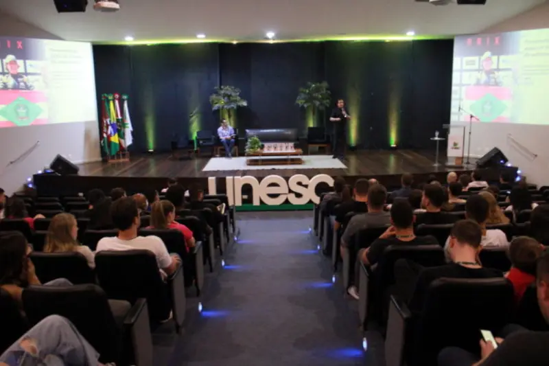 A Semana Acadêmica dos cursos de Administração e Comércio Exterior iniciou com ensinamentos do piloto André Gaidzinski, egresso da Unesc. Por meio da palestra “Planejamento de vendas em times de alta performance”, o egresso da Unesc apresentou exemplos de superação e desenvolvimento por meio da formação em Administração e das experiências no automobilismo.