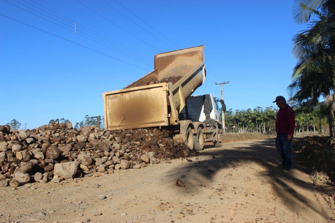 Segundo o secretário de Obras, Valdir Furlanetto, o município é responsável pela execução dos trabalhos de terraplanagem, drenagem pluvial, sub-base e base da estrada, deixa tudo preparado para a aplicação da capa asfáltica. “Estamos preparando toda infraestrutura de base num trecho desde o Pinheiro Baixo até próximo à divisa com Turvo, cerca de 1.600 metros”, explica o secretário.