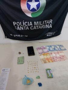 Horas após a polícia ter prendido assaltantes em Balneário Gaivota, ainda na noite de segunda-feira, 04, foi preso um traficante também naquele município. O fato ocorreu já por volta das 23h16min. A PM junto com o K9 de Araranguá realizava rondas na Rua W3, Cohab, bairro Jardim Ultramar, quando em determinado momento avistou e abordou quatro pessoas em atitude suspeita, esses estavam em frente a uma casa que segundo a PM também suspeita-se que há comércio de drogas. Os dois homens e duas mulheres estavam no local. Todos já são conhecidos no meio policial por envolvimento no tráfico de drogas e por integrarem facção criminosa.