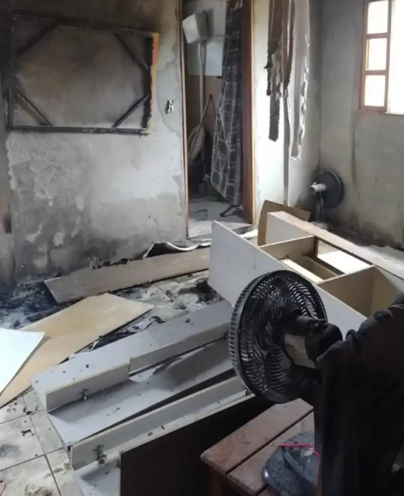 No local, a vítima e as testemunhas informaram que o suspeito ateou fogo na residência da ex companheira e deixou o botijão de gás aberto. O fato ocorreu por volta das 10h após a vítima terminar o relacionamento conjugal com o suspeito. Sendo que mesmo após o registro de várias ocorrências e de possuir medida protetiva por algum tempo, o suspeito continuava ameaçando a mulher e hoje praticou o crime.