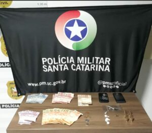 Diante dos fatos a PM de Passo de Torres e de São João do Sul entraram na cabana e localizaram o suspeito sentado na cozinha, e em cima da mesa havia Crack – 1 Grama (g) em quatro buchas já pronta para venda, além de Maconha – 0.75 Grama (g) e R$381,00 reais em trocado.