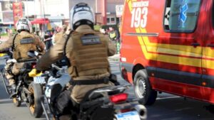 PM presta atendimento em ocorrência de incêndio na área central de Criciúma