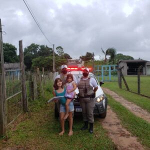 Durante a tarde desta segunda-feira (01/03), na cidade de Torres, a Patrulha Maria da Penha juntamente com PMs do policiamento ostensivo, fizeram a entrega de materiais escolares arrecadados durante a Gincana Missão Possível do PROERD, a duas famílias em situação de vulnerabilidade socioeconômica.