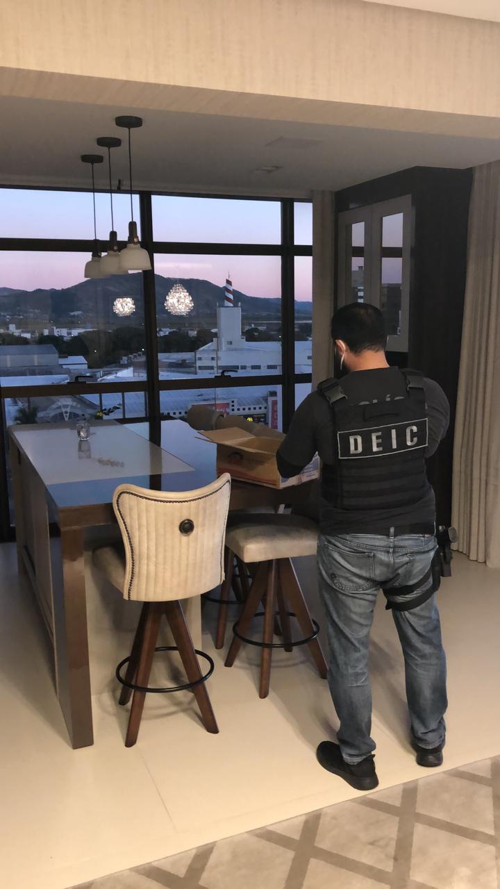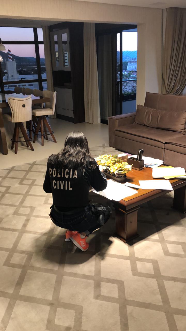 Os mandados de prisão e de busca e apreensão foram cumpridos nas cidades de Tubarão e Treze de Maio, oportunidade em que foram apreendidos aparelhos celulares, computadores e documentação apta a instruir a investigação, a qual prossegue no intuito de identificar outros possíveis envolvidos, bem como materializar ainda mais as condutas delituosas.