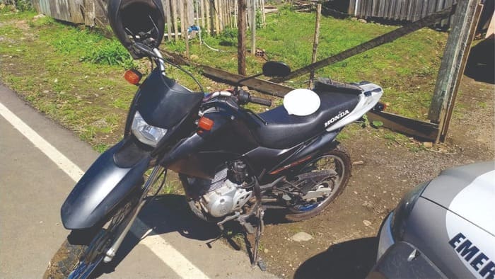 Por volta das 11h de sábado (11), a Polícia Militar deslocou até o bairro Ana Paula em Jacinto Machado e flagrou um homem em posse da motocicleta Honda NXR 150 placas MIO 5A58, que havia sido furtada horas antes na cidade de Ermo.