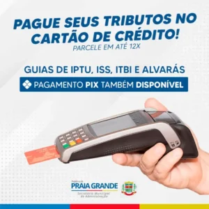 Os moradores de Praia Grande têm agora mais facilidade para pagar seus tributos municipais, como IPTU, ISS, ITBI e Alvarás. A prefeitura implantou um sistema que permite o pagamento com cartão de crédito em até 12 vezes ou na modalidade pix.