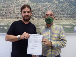 Na manhã de quarta-feira (23), o prefeito Juscelino da Silva Guimarães, entregou a ordem de serviço para a empresa Branco Pedras Artefatos de Cimento Ltda, vencedora da licitação 72/2020, pavimentar com lajotas sextavadas trechos de ruas na zona sul do balneário.