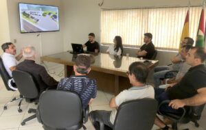 Após ouvir sugestões da população, administração municipal de Santa Rosa do Sul reuniu representantes da paróquia de Santa Rosa de Lima e da comunidade de Jaguarari para apresentar o pré-projeto da nova praça local. O entorno da igreja e proximidades vão ganhar pavimentação e drenagem.
