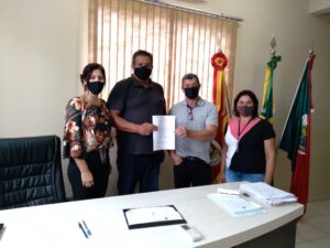 O prefeito Carlos Souza e o secretário de Assistência Social e Direitos Humanos Fábio da Rosa, participaram nesta sexta-feira (26) da assinatura de convênio com demais prefeitos dos municípios da Comarca de Torres (Três Cachoeiras, Três Forquilhas, Dom Pedro de Alcântara, Morrinhos do Sul, Arroio do Sal, Mampituba, além de Torres) para a manutenção da Casa de Acolhimento Estrela Guia. Os municípios mantêm esta parceria desde 2005, através do Termo de Ajustamento de Conduta-TAC firmado entre estes Municípios e Ministério Publico, com repasse financeiro e cedência de profissionais para compor a uma equipe técnica multidisciplinar.