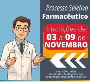 A Prefeitura de Torres divulgou o Edital nº 1429/2025, que trata da abertura de Processo Seletivo Simplificado para contratação temporária de Farmacêutico, junto à Secretaria Municipal de Saúde. O processo será realizado pela análise de currículos, conforme critérios estabelecidos no edital.