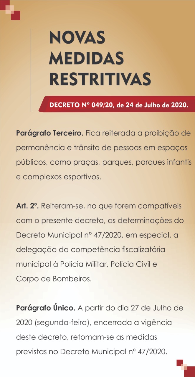 No último decreto, publicado na terça-feira, apenas conveniências, lanchonetes, padarias, bares, restaurantes sorveterias e afins estariam fechados no final de semana, sendo permitido o funcionamento de segunda-feira a sexta-feira somente até às 23h. Com o novo decreto, todos os estabelecimentos, inclusive supermercado e indústrias, estarão fechados no sábado e domingo, abrindo exceção apenas para as farmácias e postos de gasolina. Os serviços de delivery de bares, restaurantes, pizzarias e similares também serão permitidos.