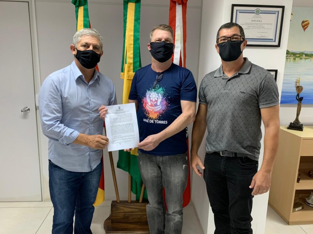 O prefeito Carlos Souza e o secretário de Assistência Social e Direitos Humanos, Fábio da Rosa, receberam no gabinete do prefeito nesta terça-feira, 23 de março, o presidente da Associação de Pais e Amigos dos Excepcionais de Torres-APAE, Alexandre Turatti de Rose, para formalizar a assinatura do Termo de Fomento de repasses financeiros à entidade.