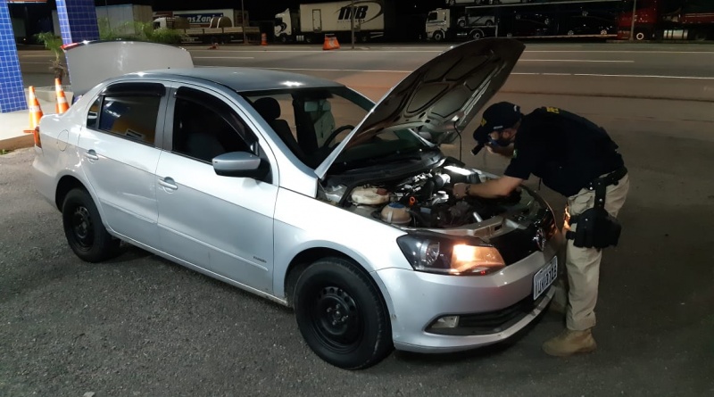 Os PRFs fizeram vistoria minuciosa no veículo e descobriram que o veículo estava com placas falsas; o carro era de Campo Bom/RS e tinha sido furtado em 28/07/2020. Os policiais constataram, ainda, que o motorista tinha diversas passagens e condenações por crimes (receptação, roubo, homicídio). Ele foi preso e encaminhado, junto com o veículo, para a Polícia Civil de Tubarão.