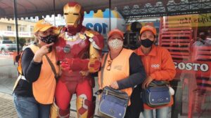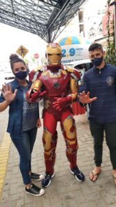 A equipe da emissora distribuiu doces para as crianças e possibilitou em parceria com a Universo Cultural Geek que os pequenos tirassem foto com o ”Homem de Ferro”.