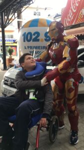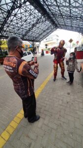 A equipe da emissora distribuiu doces para as crianças e possibilitou em parceria com a Universo Cultural Geek que os pequenos tirassem foto com o ”Homem de Ferro”.