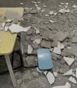 Na tarde de quarta-feira, dia 30, um acidente que ocorreu no interior da creche Bernadete Costa Nolla, no bairro Lagoão, em Araranguá, deixou uma criança ferida na cabeça. Por volta das 16h30min, quando as crianças estavam na sala de aula, parte do reboco do teto caiu atingindo a menina de 2 anos.