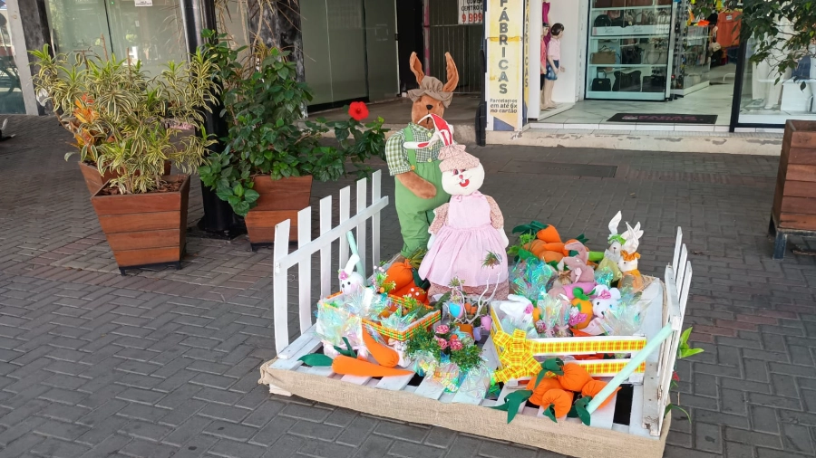A Rua Coberta de Sombrio começou a ganhar um clima especial de Páscoa nesta quinta-feira (21). A Casa da Cultura foi responsável pela montagem da decoração, que alia beleza e sustentabilidade, reaproveitando materiais de anos anteriores e reformando peças para compor o cenário temático.