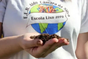 “Repensar, reduzir, reciclar”: Essas palavras estão escritas na parede da EEB Aldo Câmara da Silva, em São José, escola com mais de 600 estudantes que recebeu o título de primeira escola lixo zero do país e hoje é inspiração para muitas outras. No pátio central da unidade há muito verde e uma horta, que cresceu com o adubo produzido ali, processo que envolve toda a comunidade escolar, incluindo as famílias.