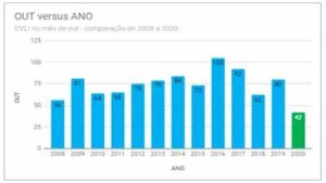 A Polícia Militar de Santa Catarina (PMSC) registrou em outubro de 2020 o menor índice de Crimes Violentos Letais Intencionais (CVLI) desde 2008, com o início da série mensal. Nesse último mês, 42 crimes foram registrados, ficando abaixo de setembro, que já havia apresentado o melhor índice até então, de 44.