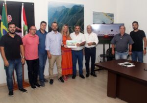 Comitiva de Santa Rosa do Sul esteve na capital catarinense nesta terça-feira, 22 de fevereiro, em busca de parceria do Estado para transformar em realidade o projeto do parque municipal de eventos, que foi apresentado à Santur e teve retorno positivo da agência estadual.