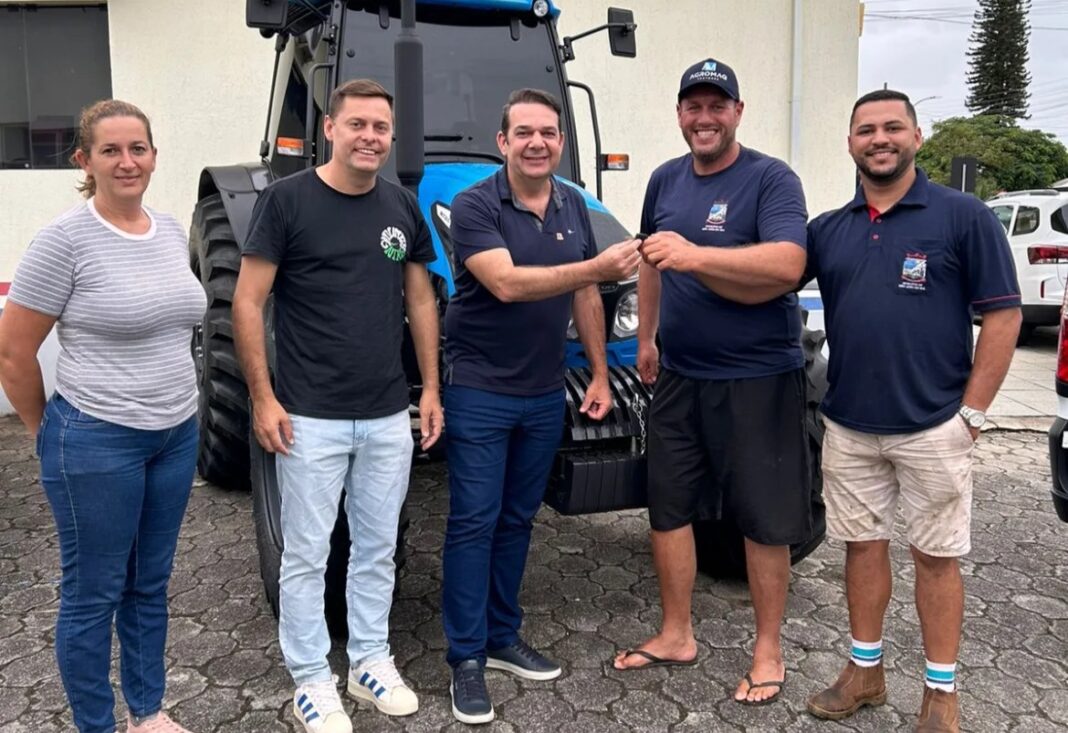 Além dos carros, a Secretaria de Agricultura também recebeu um novo trator. O equipamento foi adquirido por meio de emenda parlamentar e será utilizado para ampliar os serviços de apoio aos produtores rurais do município.