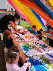 As aulas de artes ficaram ainda mais especiais e as brincadeiras com tintas, customização de camisetas estilo tie-dye ganham espaço, assim como os palhaços, bruxas e fadas, de professoras fantasiadas para brincadeiras ou para os Contos de Histórias e Fábulas infantis.