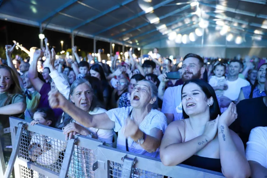 O Parque das Nações foi palco de uma noite histórica neste sábado (4) nas celebrações do centenário de Criciúma. O cantor gospel Leandro Borges, natural da cidade, reuniu cerca de 20 mil pessoas em um espetáculo de fé, união e solidariedade, promovido pela Fundação Cultural de Criciúma (FCC). Famílias inteiras acompanharam o show, que começou com a apresentação da Orquestra Harmonia Celeste.