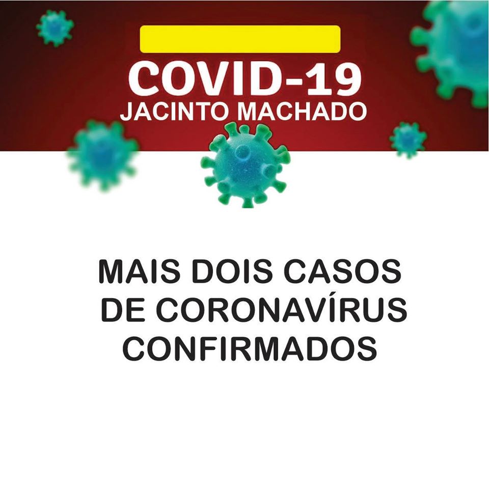 A Vigilância Epidemiológica de Jacinto Machado recebeu a confirmação de mais dois casos de coronavírus na cidade. Trata-se de um homem, de 34 anos, trabalha com atendimento ao público e está em isolamento domiciliar. O outro confirmado é um homem de 68 anos que reside no município há 20 dias e está hospitalizado.