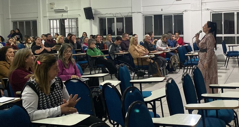 Um encontro de professores, gestores e diretores de escolas na noite da última segunda-feira, 26, na Escola Nair Alves Bratti, levou aos docentes aulas de Libras, num curso em parceria com Uninter, ministrado pela professora Ana Paula Jeremias da Matta e pelo professor Ramon Cunha e a professora da Unesc, Carla Colonetti.