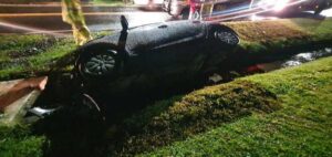 O condutor do HB20 perdeu o controle do carro, saiu da pista, e acabou tombando em uma valeta de concreto e colidindo contra a tampa de um boeiro. Com o forte impacto a frente do veículo ficou destruída, o carro estava com três pessoas, dois homens ficaram feridos, sendo conduzidos para o hospital Dom Joaquim de Sombrio para atendimento.