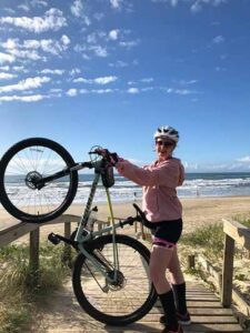 PEDAL: Ero Possamai pedalando na praia de Balneário Gaivota