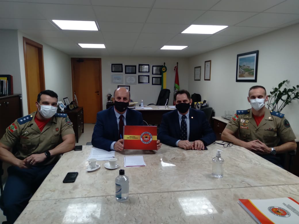 O líder do Governo, deputado Zé Milton recebeu nesta quarta-feira (14), o Comandante do 2º/3º/4º BBM, Tenente Ricardo Cavaler Bianchi, o Comandante do Corpo de Bombeiros Militar de Araranguá, capitão Vinicius Moura Marcolin e o deputado Cel. Onir Mocelin, para tratar da destinação de emendas para a conclusão da nova sede do quartel em Sombrio.
